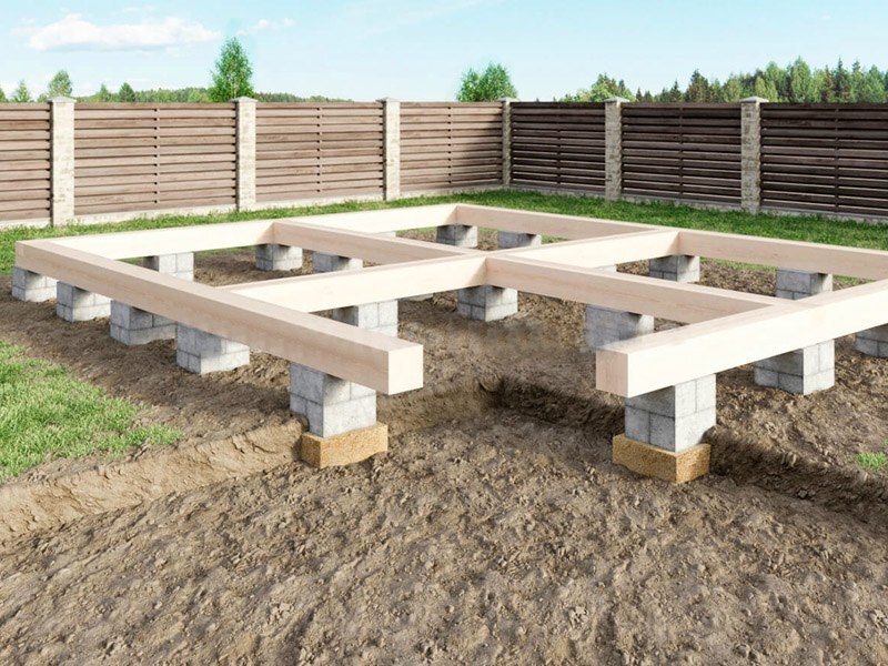 Установите бетонные блоки или залейте опоры бетоном.